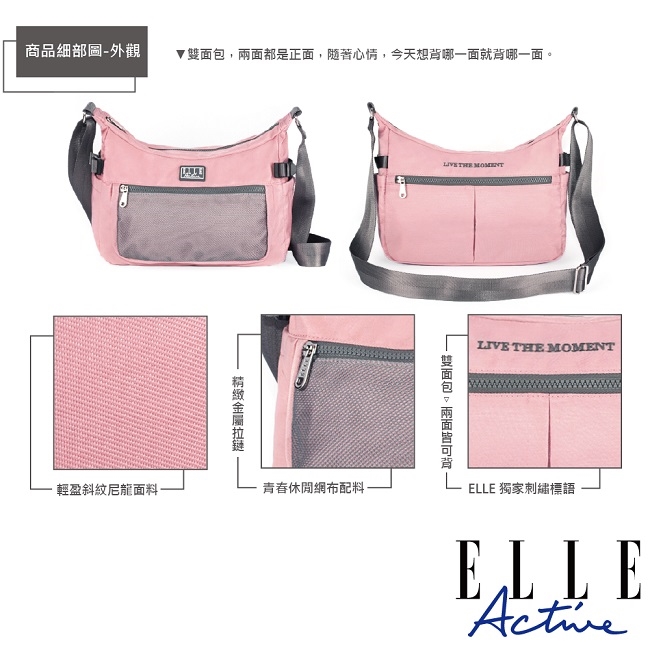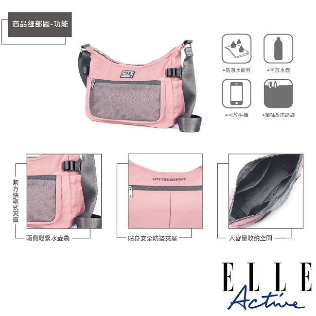 商品品名:【ELLE Active】透視網布系列-側背包/斜背包-大(粉紅色)