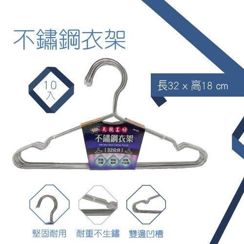 天瓶工坊 HW-580 32公分不銹鋼衣架10入