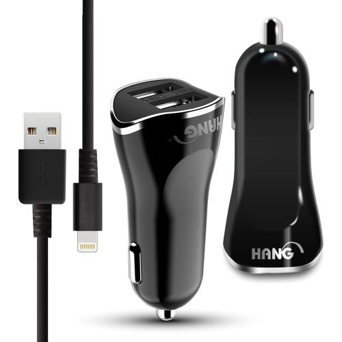 HANG 台灣認證2.1A雙孔USB快速車充+iPhone/ipad系列傳輸充電線-黑色組