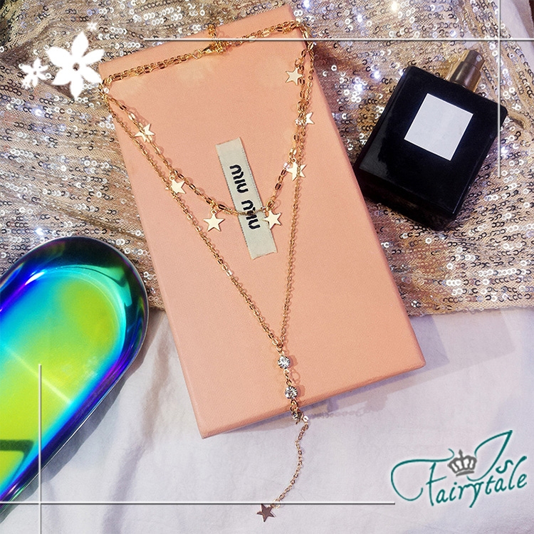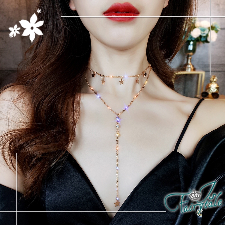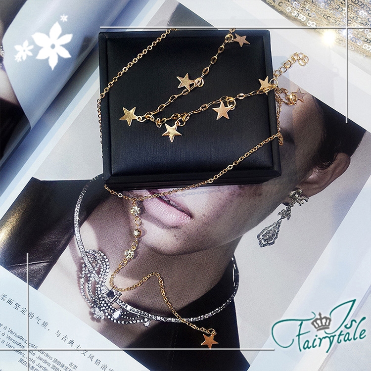 性感雙層鎖骨鍊款式,搭配星星與水鑽交錯,