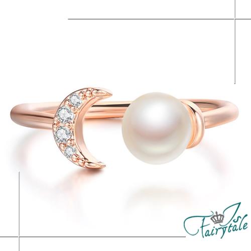【伊飾童話】人魚望月*珍珠水鑽玫瑰金開口戒指/戒圍可選