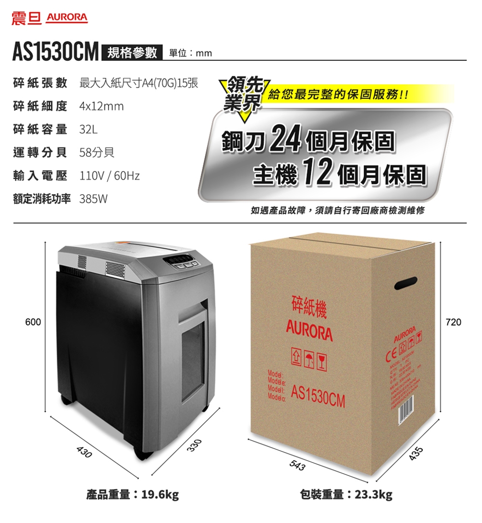 ※商品於出廠前每台都會經過品檢測試,裁刀上會有潤滑油,裁刀及集紙桶內皆會有少許測試用紙屑,皆為全新品之正常現象。