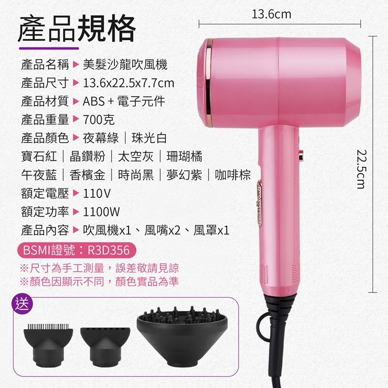 產品內容:吹風機x1 風嘴x2 風罩x1 說明書x1
