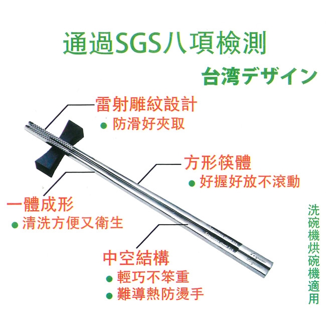 ◎方型筷體好握不易滾動