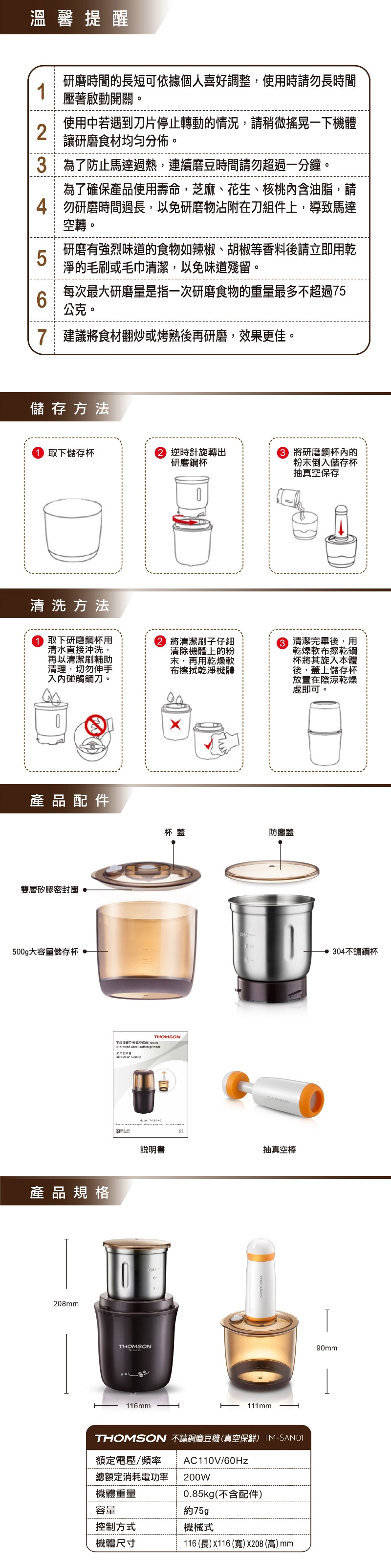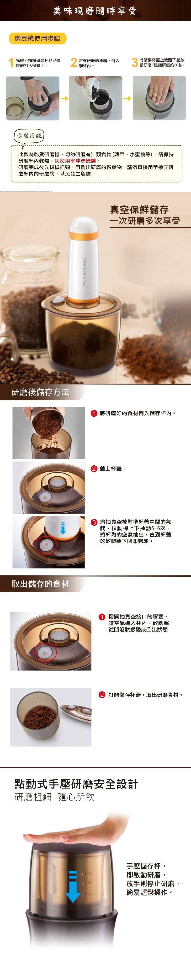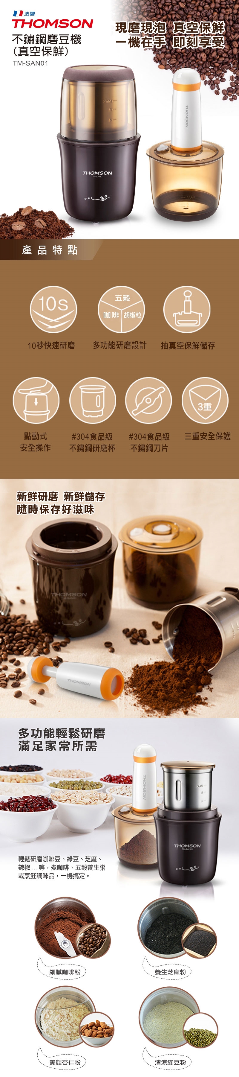 THOMSON 不鏽鋼磨豆機(真空保鮮) TM-SAN01