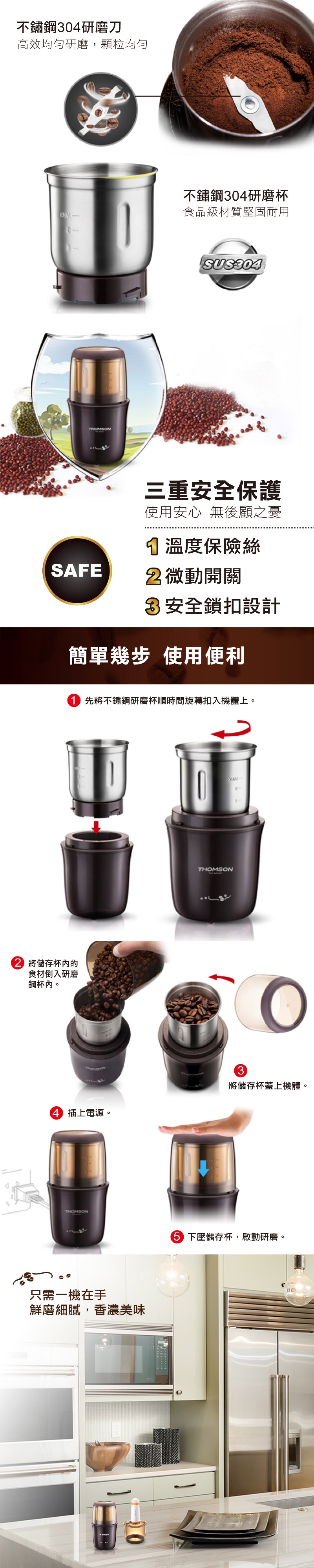 ◆多功能研磨設計 (咖啡豆/五穀類)