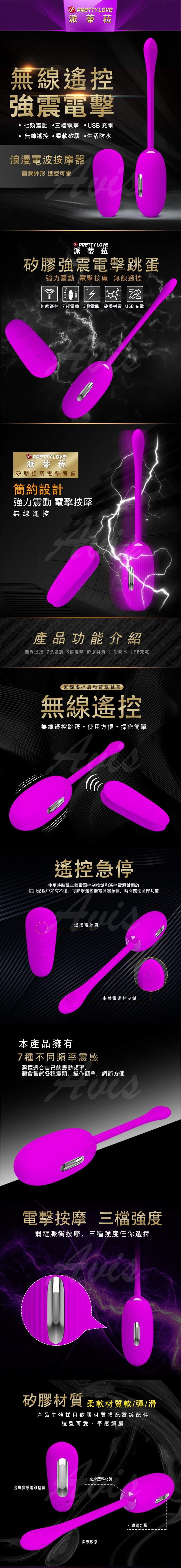 品名:PRETTY LOVE-Shock fun 電擊跳蛋 無線遙控+7頻強震+3檔電擊+親膚硅膠+防水+充電