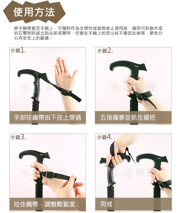 2.手杖除了做健走、徒步及登山用之外,請勿作為其他用途。