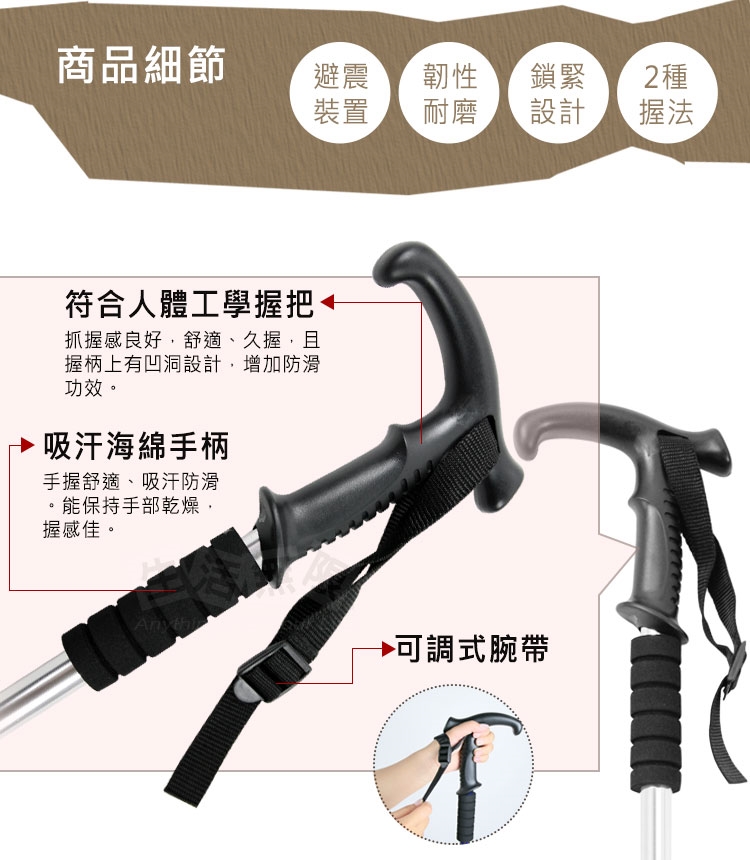 品名:【生活無限】登山杖/經典款三節 6061鋁合金/T柄