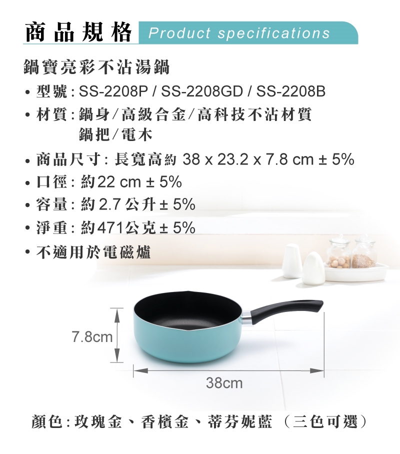 品名:鍋寶 亮彩不沾湯鍋22CM