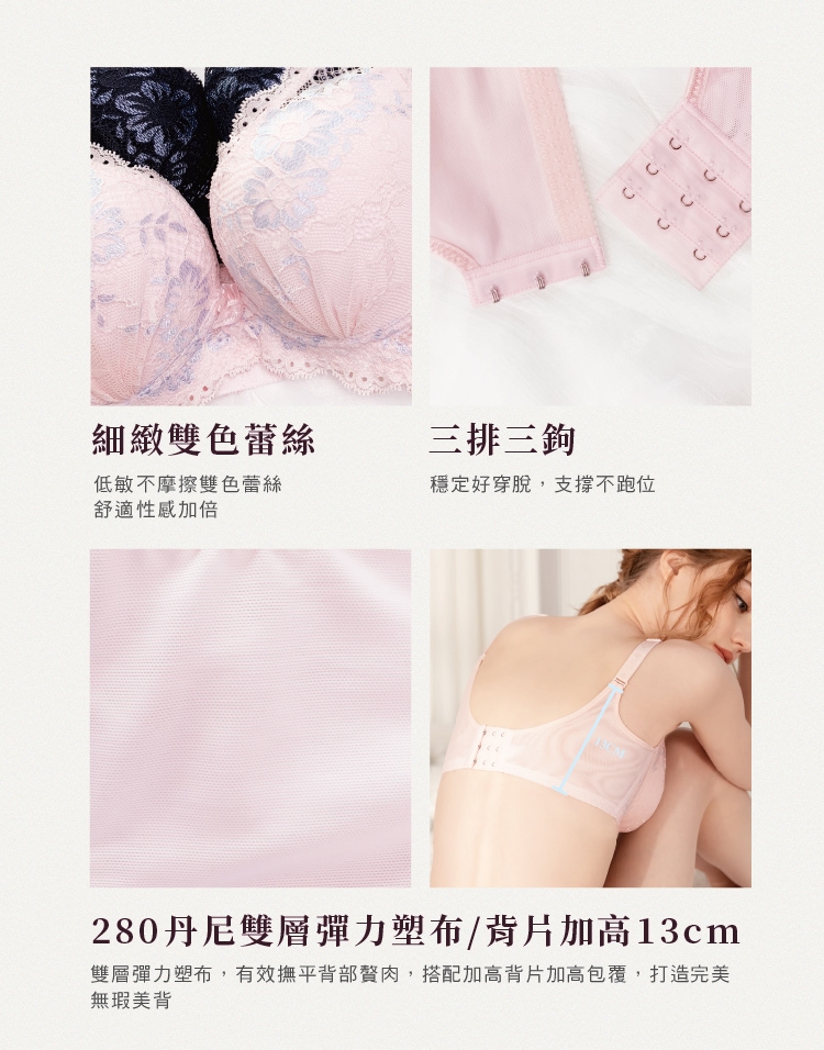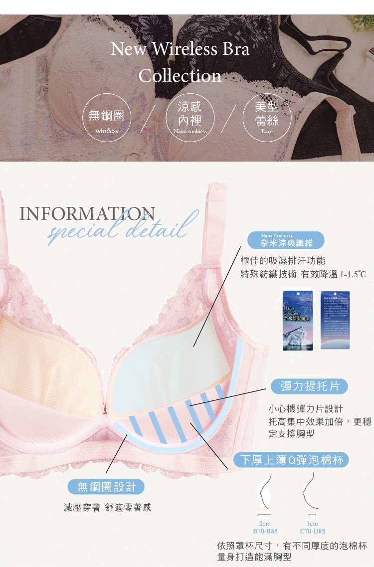 【可蘭霓Clany】純愛日記無鋼圈集中包覆BCD罩杯調整型機能蕾絲涼感內衣