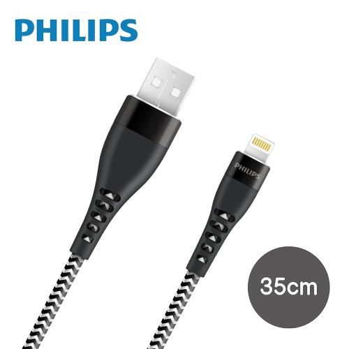 【PHILIPS飛利浦】lightning 子彈絲 手機充電線35cm DLC4511V