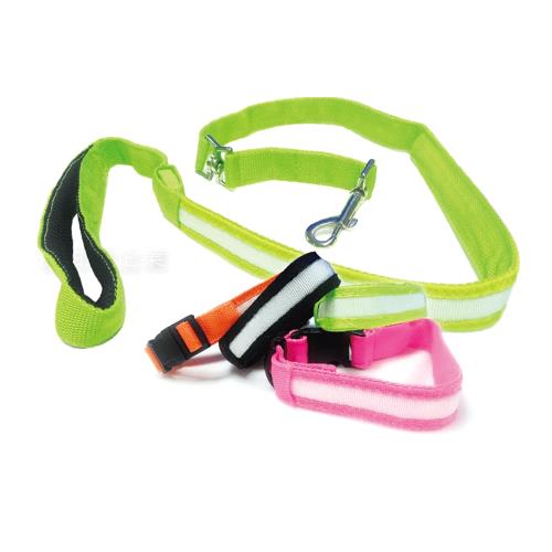 【派樂】LED夜間發光寵物項圈/牽繩組(1組)-發光項圈 反光尼龍 寵物帶 狗鏈 狗繩 牽繩 散步繩
