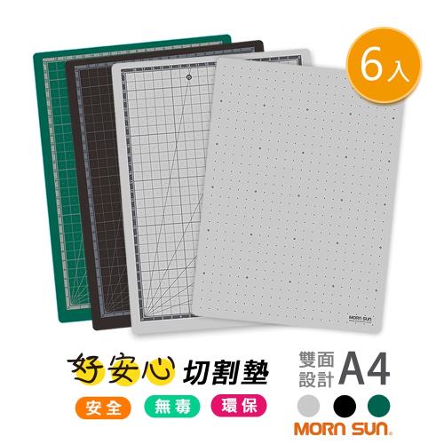 【MORNSUN】6入裝 好安心A4切割墊 環保無毒/厚3mm 雙面切割設計 公分線/格點 黑/灰/綠 (符合台灣安全標準)