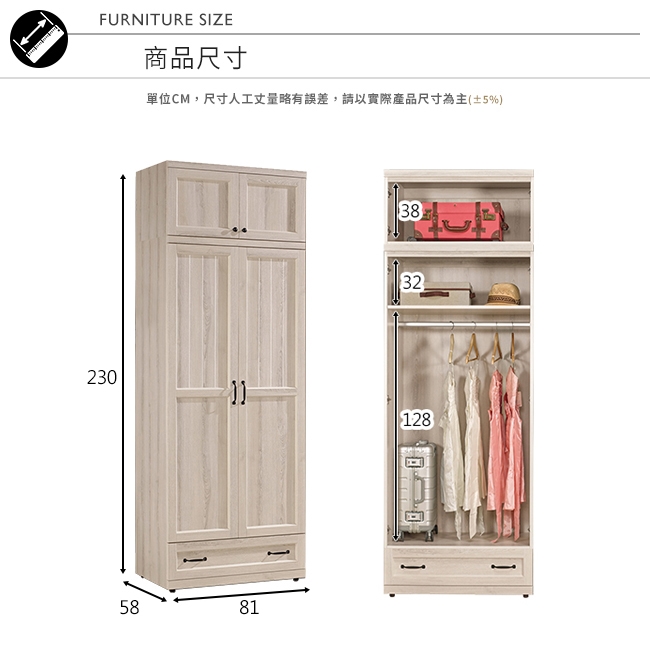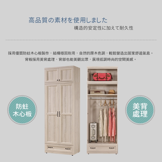 雙層+單吊桿+單抽屜的多功能加高設計,讓您有效收納!