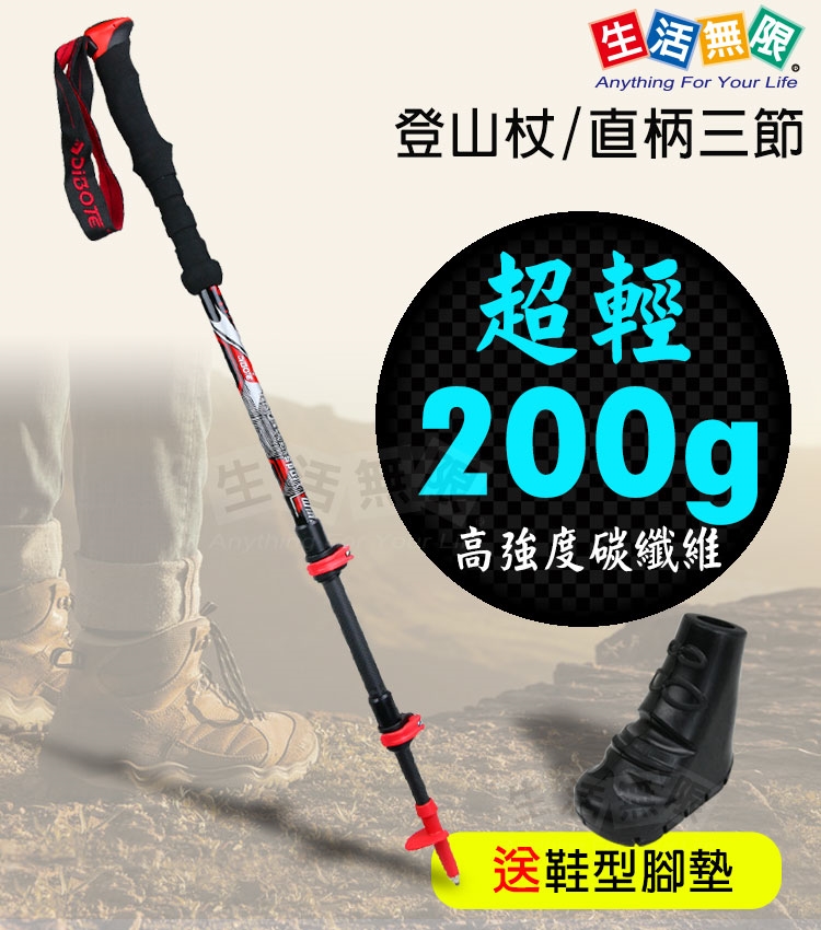 品名:【生活無限】登山杖/直柄三節 碳纖維/外鎖式