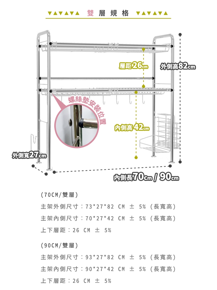 八. 腳墊可因應架設位置自行調整高低。