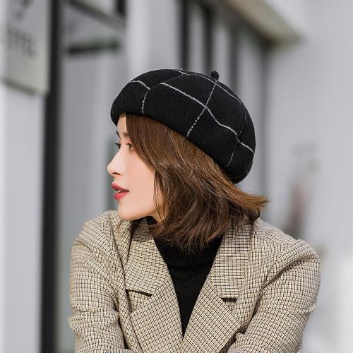 Acorn*橡果-韓系仿羊絨網紅畫家帽貝蕾帽南瓜帽遮陽帽八角帽1822(黑色)