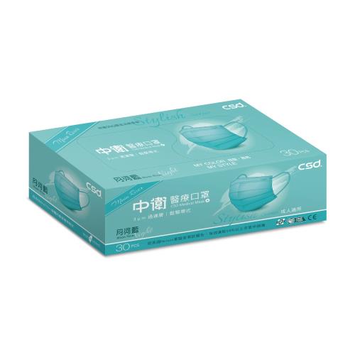【CSD中衛】雙鋼印醫療口罩-月河藍(月夜)1盒入(30片/盒)