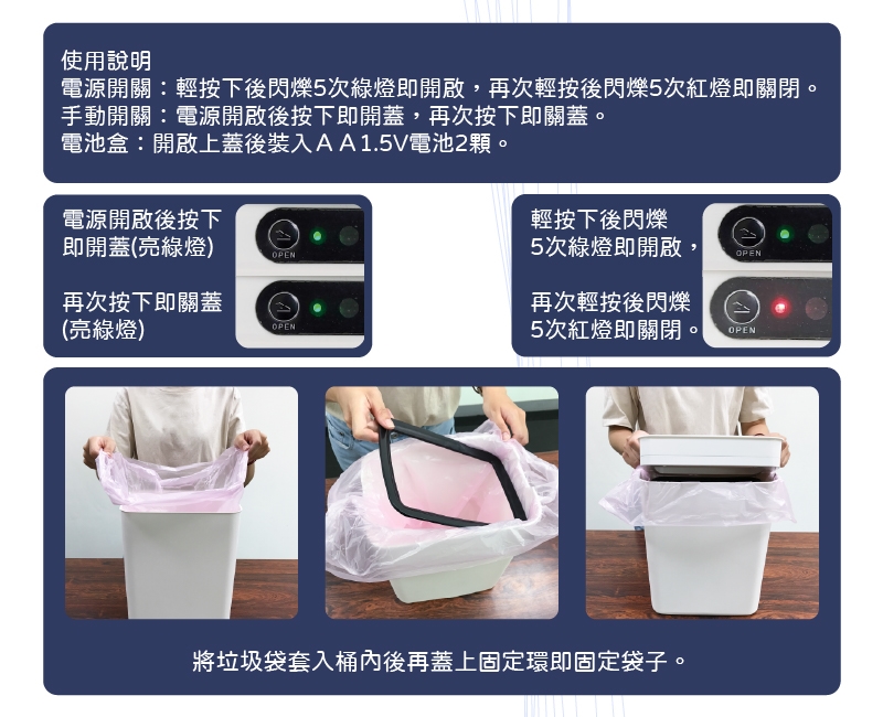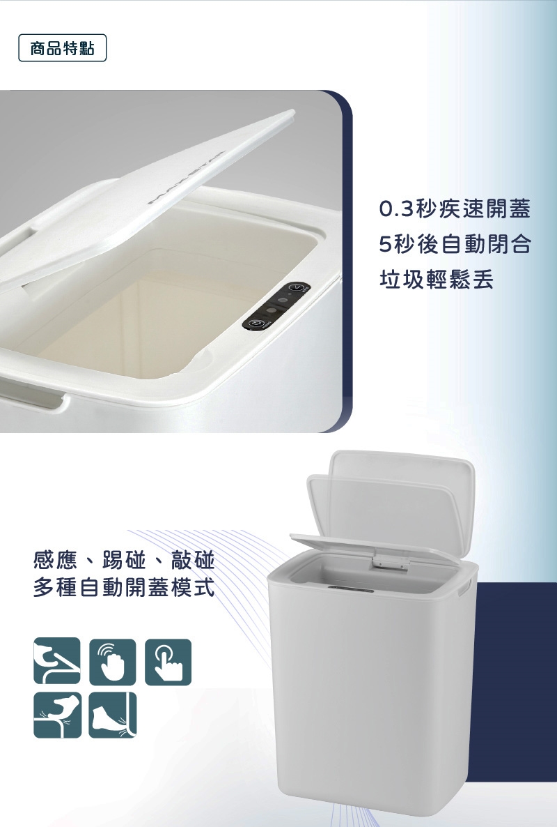 3. 0.3秒疾速開蓋,5秒後自動閉合,垃圾輕鬆丟。