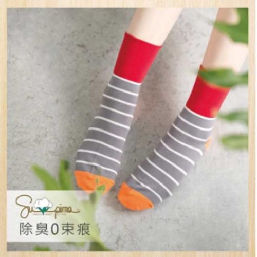 【DR.WOWO】Supima抗菌萊卡除臭襪-女寬口條紋短襪