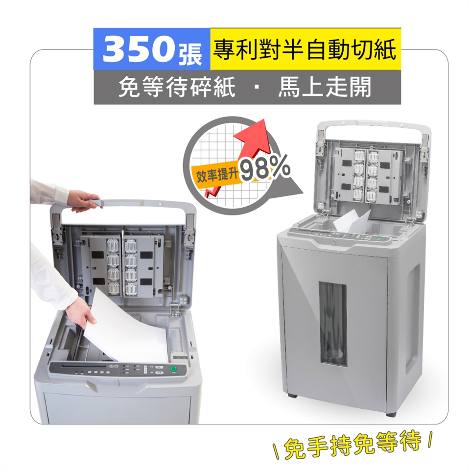 一次速碎350 張,免等待馬上走開!自動碎紙ok!