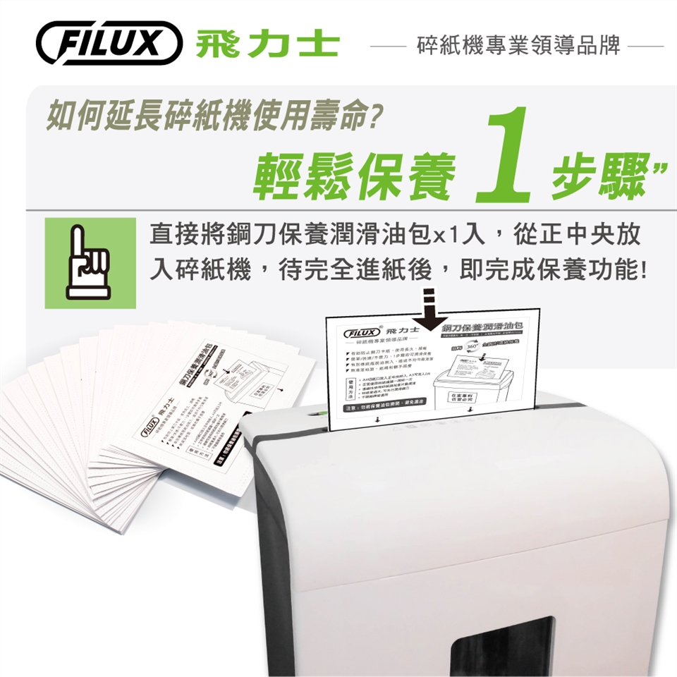 ◆ 加碼贈 FILUX 飛力士-碎紙機專業鋼刀保養潤滑油包*6片(價值$199),數量有限送完為止!