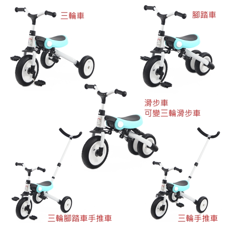 - 六種功能合一的成長型腳踏車,提供小朋友更多的遊玩樂趣
