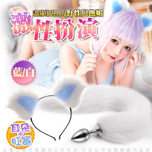 角色扮演 性感裝扮 後庭肛塞按摩器 妖豔小狐狸角色扮演 毛絨耳朵+不鏽鋼肛塞尾巴 狐狸尾 白藍