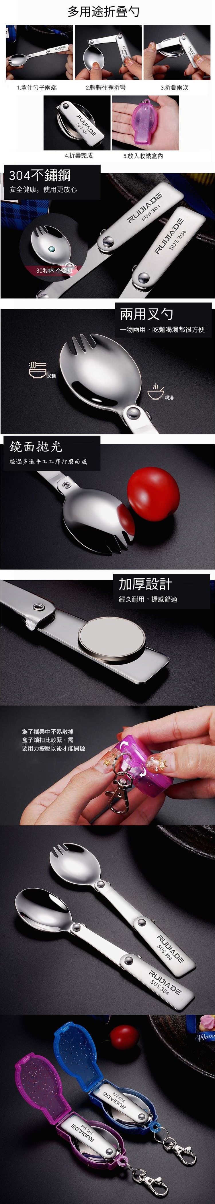 可攜式折疊湯叉匙-304不鏽鋼摺疊叉匙