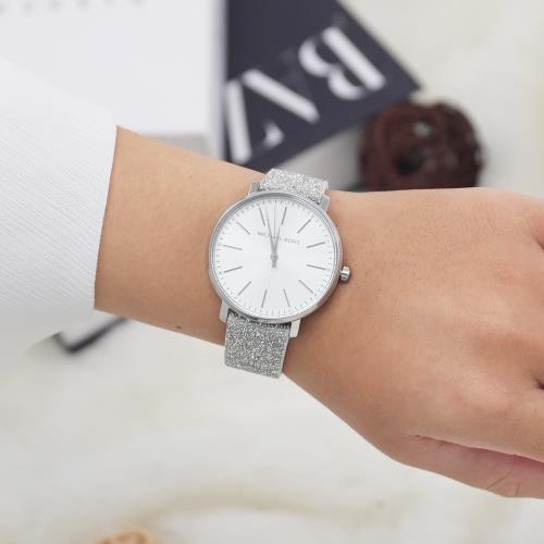 MICHAEL KORS MK2877 施華洛世奇水晶皮帶石英腕錶.銀