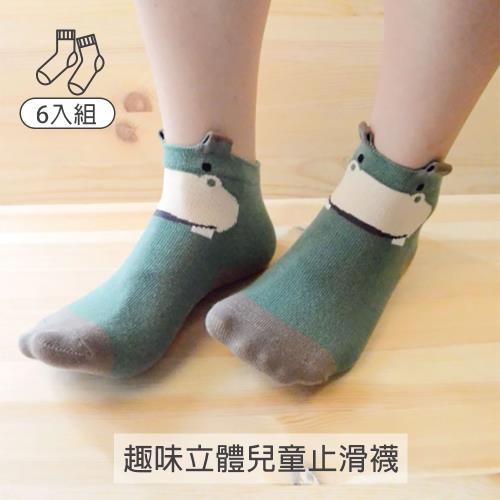 【DR.WOW】(6入組) 趣味立體兒童止滑短襪-河馬