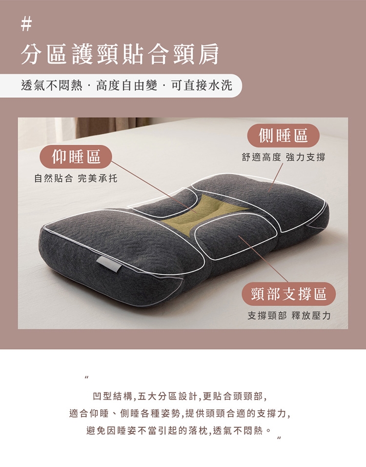 ★分區設計 滿足不同睡姿 使呼吸順暢 —