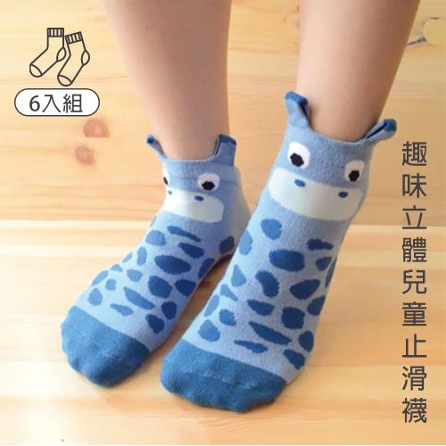 【DR.WOW】(6入組) 趣味立體兒童止滑短襪-長頸鹿