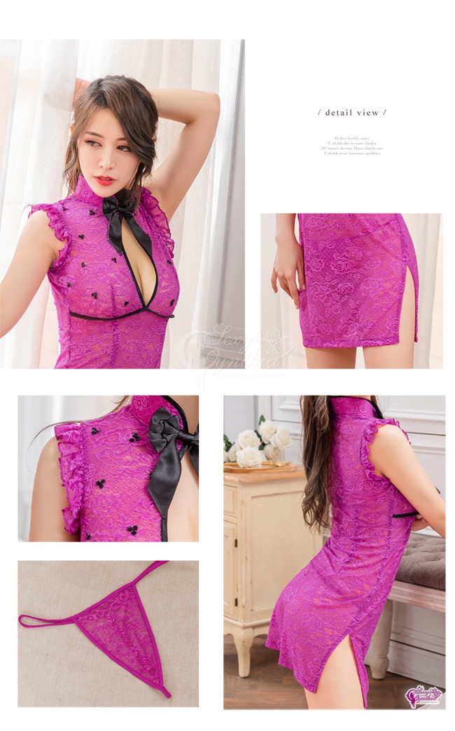 此款旗袍採用若隱若現的網紗材質,