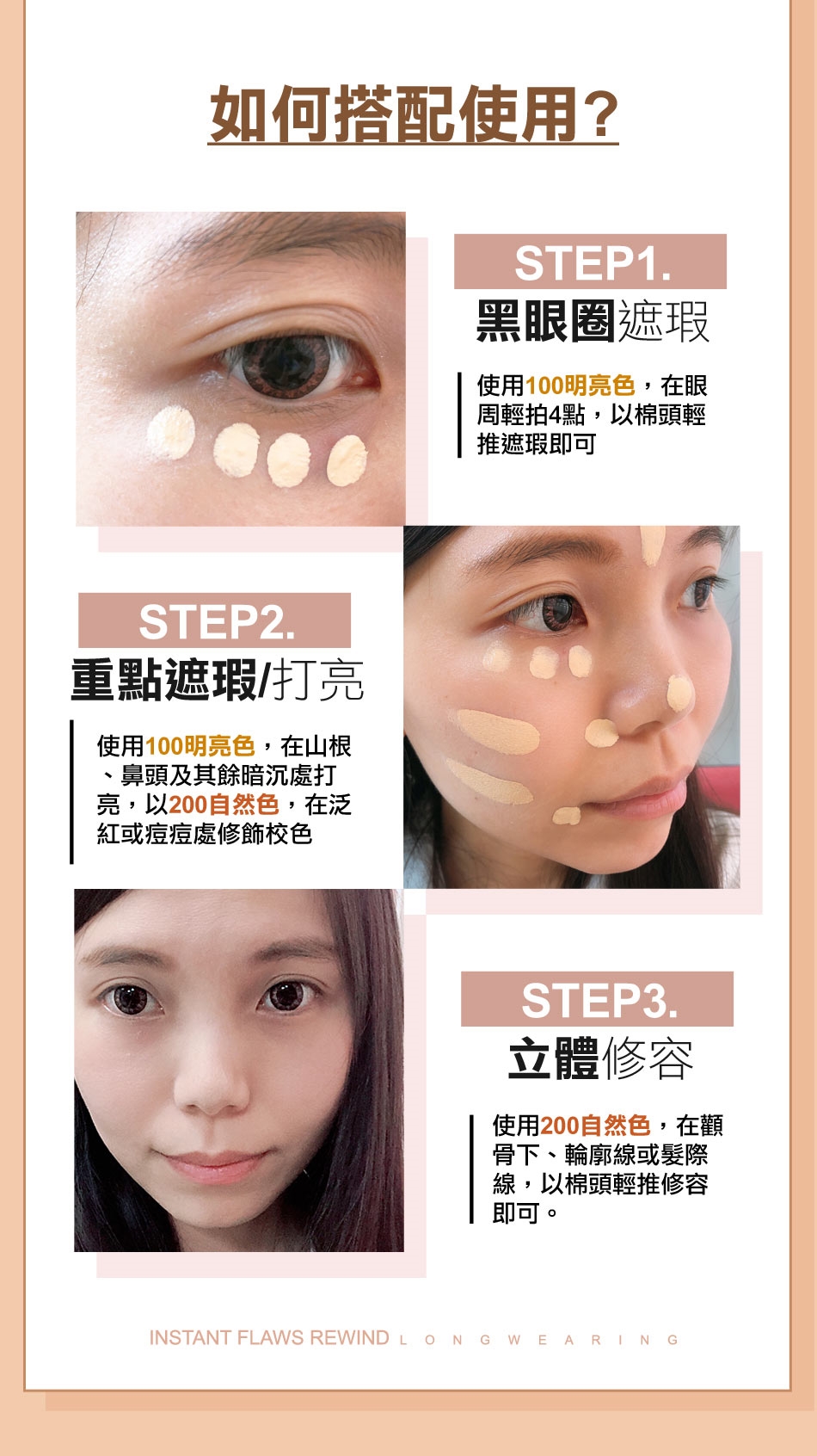 底妝上完之後,使用遮瑕筆塗抹於所需加强遮蓋部位即可