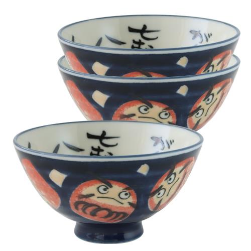 Just Home日本製深丸大平飯碗3件組(達摩花紋)實用可微波的飯碗組