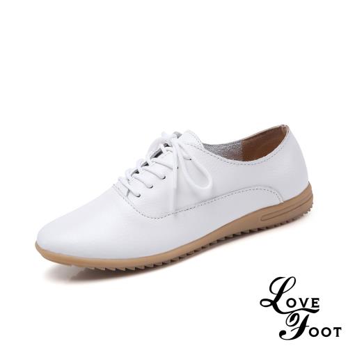 【LOVE FOOT 樂芙】真皮超軟底坡跟時尚拼接百搭牛津鞋 白