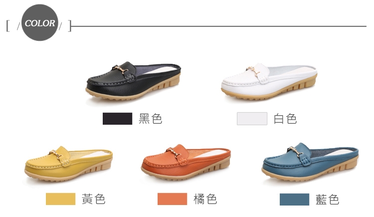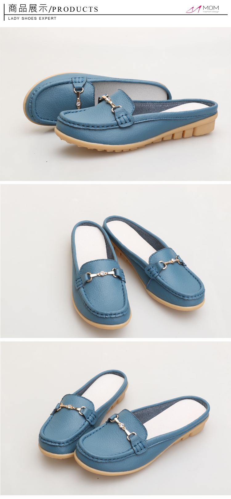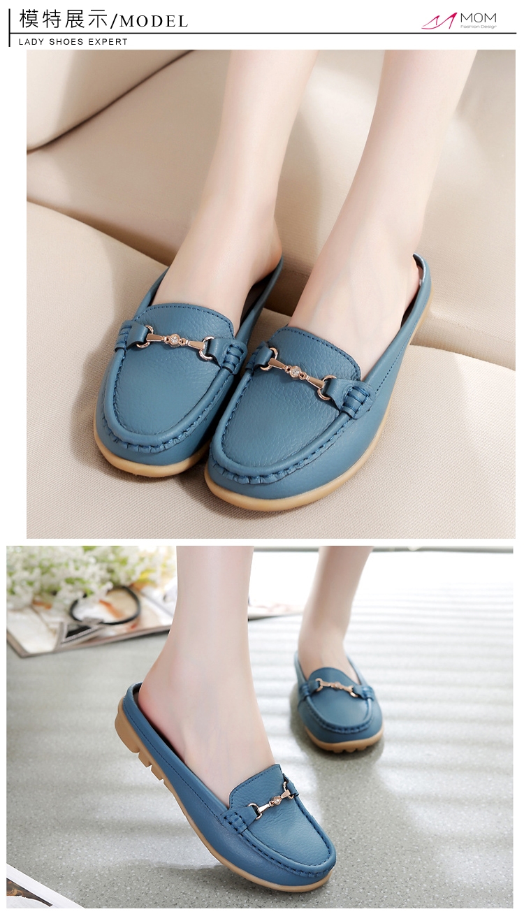 【LOVE FOOT 樂芙】真皮優雅單鑽飾舒適平底包頭拖鞋 藍