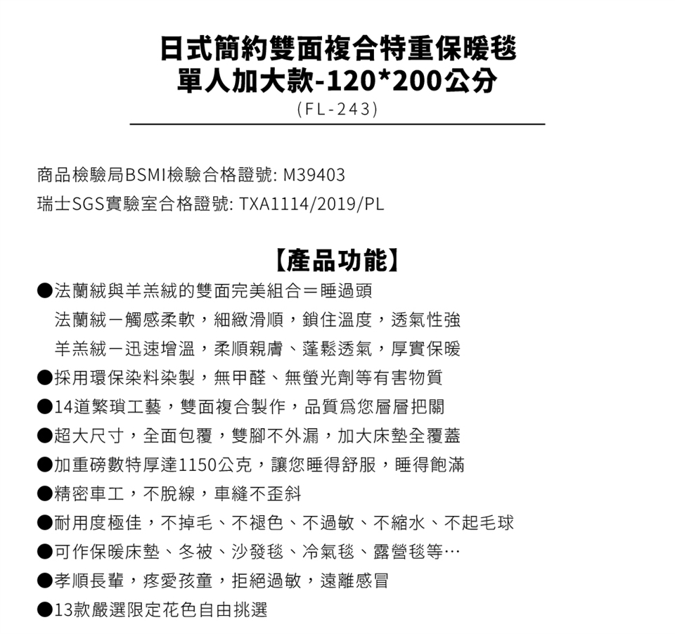 由於法蘭絨作工繁瑣,出廠前有平剪程序,也就是剛做好的絨料,絨面的絨毛長度長短不一,為使其更加舒適美觀會以此一工序將其絨毛長度修剪整齊,因此您收到的產品可能會有平剪後所殘留的絨毛,新品收到時可先至空曠處將殘留毛料拍打掉再行使用,但此非掉毛,為避免不必要的誤會,特此申明。