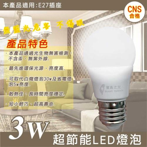 寶島之光 3W 超節能燈泡1入 無藍光危害不傷眼 E27燈座(白光)GLD-G03DFE