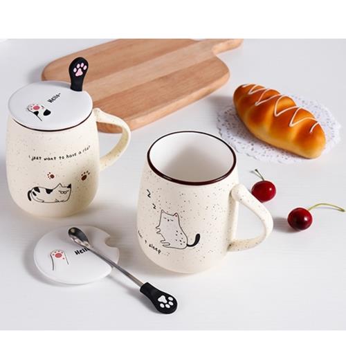 【可愛貓】陶瓷麥點馬克杯450ml+附湯匙X1/ 陶瓷馬克杯(隨機)