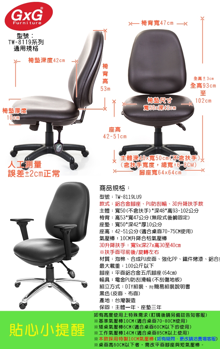 購買注意事項:本座椅高度,均以搭配標準桌高70~75CM使用。