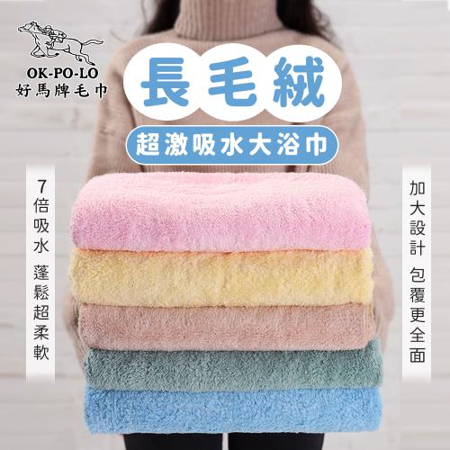 【OKPOLO】長毛絨超激吸水大浴巾(7倍吸水力 顏色繽紛)