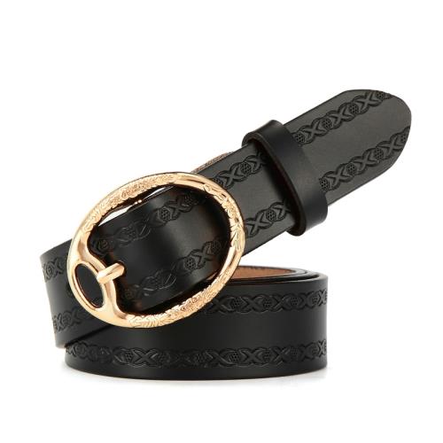 女用新潮穿針式牛皮腰帶皮帶黑色 (腰圍在22-37吋以內適用) ZK2015BK