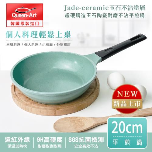 韓國Queen Art超硬鑄造玉石陶瓷耐磨不沾平煎鍋20CM(1鍋)