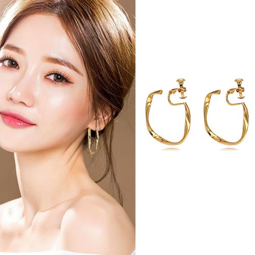 【Emi艾迷】無耳洞歐美爆款不規則大圈圈耳環耳夾(耳夾)