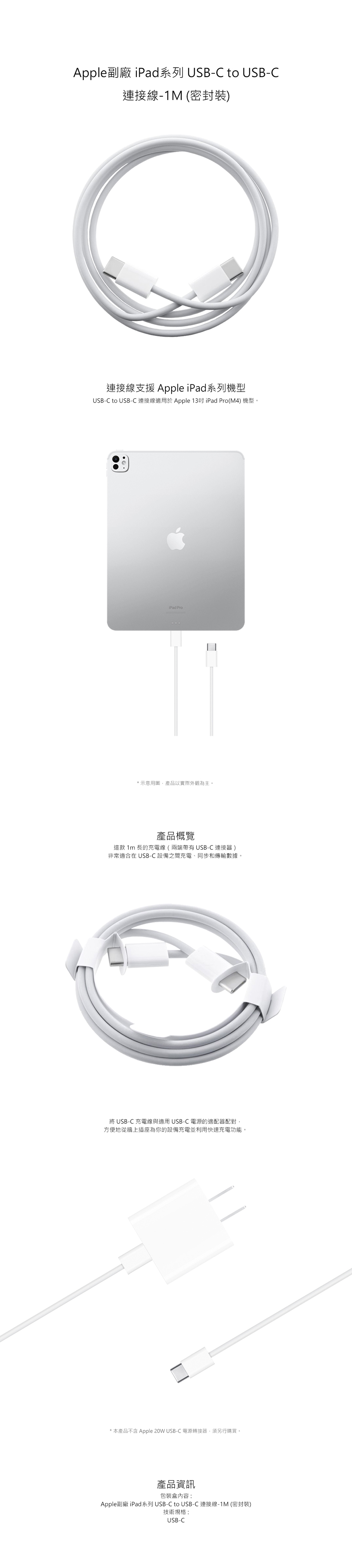 品名:Apple副廠 iPad系列 USB-C to USB-C 連接線
