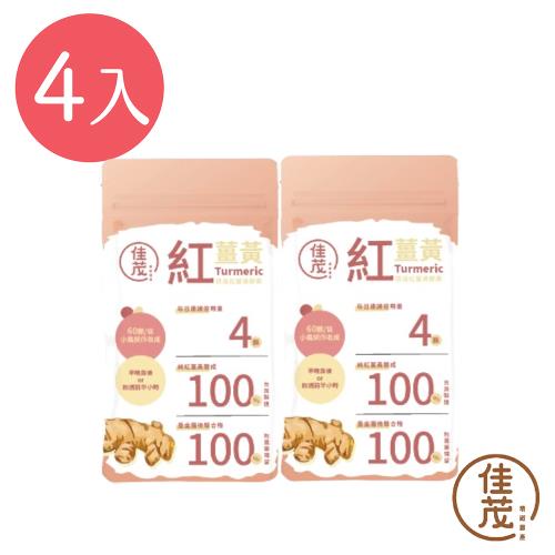 【佳茂精緻農產】提昇免疫力100%純紅薑黃膠囊 隨身包 4包組(60顆/包)
