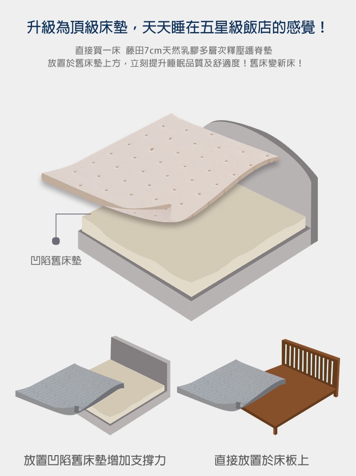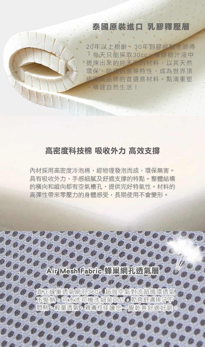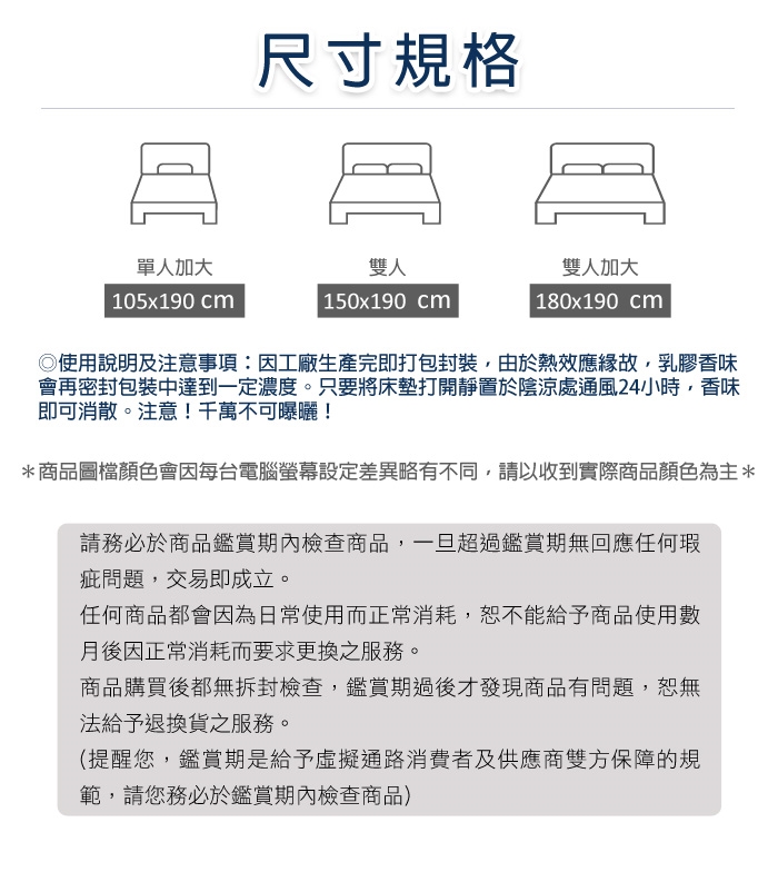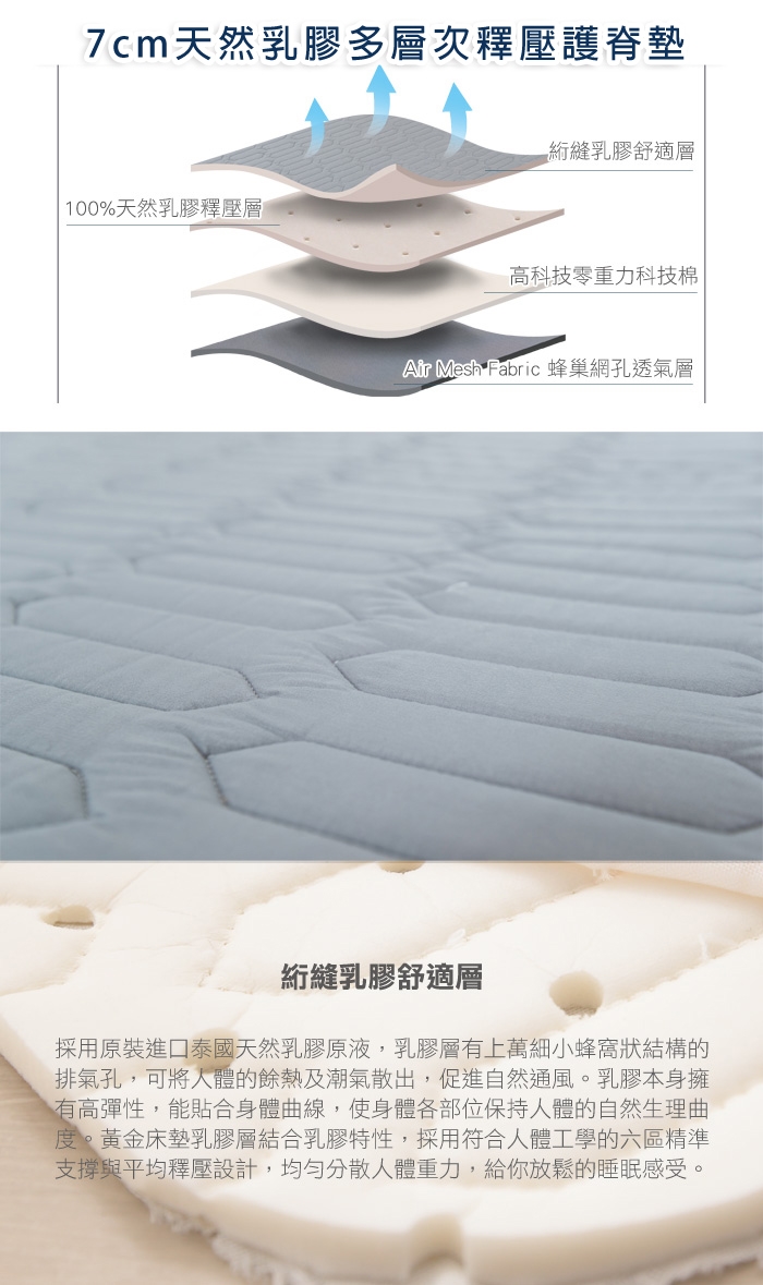 主商品:天然乳膠床墊雙面黃金7cm加大x1(可開放體驗)